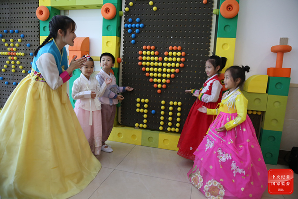 金秋九月,硕果飘香。吉林省延吉市第十一幼儿园组织“小小感恩心 浓浓师幼情”主题实践活动,图为大班幼儿们在拼装墙前拼出“爱心”“9·10”图案,为老师们献上节日的祝福,表达对老师的爱与感恩。(吉林省延吉市纪委监委供 李梅花 摄)