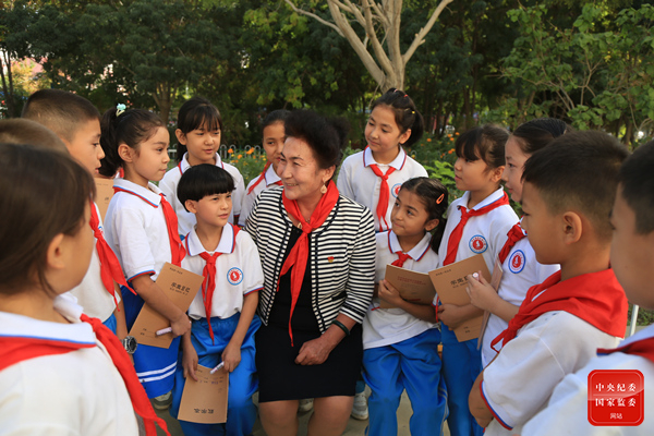 新疆维吾尔自治区阿瓦提县实验小学的退休老师返回校园,为小学生们讲述红色革命故事等,教育每位学生更加珍惜今天的幸福生活,好好学习,天天向上。(新疆维吾尔自治区阿瓦提县纪委监委供 雷延花 摄)