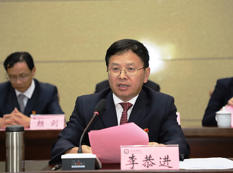 李恭进要求,要把决策变为实践,把任务变为行动,把蓝图变为现实。一要牢牢把握社会主义办学方向,坚决做到“两个维护”。希望新一届党委、纪委自觉践行,当好表率,树牢“四个意识”,坚定“四个自信”,坚决做到“两个维护”,不断增强本领能力,切实改进工作作风,严于律己,恪尽职守,不负组织所托,不负师生厚望,在新时代谱写赣医发展新篇章。二要牢牢把握发展第一要务,推动学校内涵式发展。要义不容辞地肩负起历史使命,牢牢抓住用好重要战略机遇期,以实施“人才强校、质量提升、学科建设、科研创新、环境改善”五大工程为抓手,全面提升学校内涵建设水平和质量,着力在重点领域优先发展,做到集中力量求突破,众志成城攻难关,推动学校教学、科研、医疗各项工作更上新台阶。三要牢牢把握担当实干要求,推动党代会精神落地生根。要在统一思想中贯彻党代会精神,在落实责任中贯彻党代会精神,在真抓实干中贯彻党代会精神,在改革创新中贯彻党代会精神,在凝心聚力中贯彻党代会精神,用党代会提出的战略部署和奋斗目标激励人心、凝聚人心、振奋人心,努力形成创建医科大学的强大合力,形成群策群力谋发展、凝心聚力干事业的生动局面。