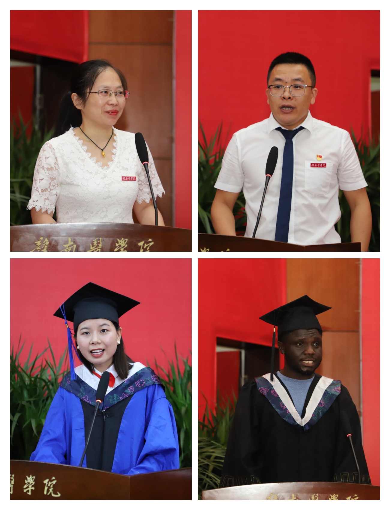 第一临床医学院2015级麻醉学专业本科(1)班范桂芬、留学生IFEANYI CHRISTIAN ONYEBUCHI(克里斯)、硕士研究生吴晶等代表毕业生先后发言,表达对母校的感恩、眷恋和祝福。基础医学院副院长罗晓婷代表任课教师对毕业生顺利毕业表示祝福。
