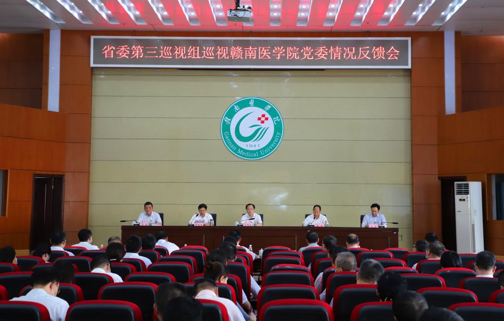 根据省委统一安排,2020年8月21日,省委第三巡视组向赣南医学院党委反馈巡视情况。省纪委常委庄国良出席反馈会议,对抓好巡视整改工作提出要求。会议向赣南医学院党委书记李恭进传达了省委书记刘奇同志听取巡视情况汇报时的讲话精神。省委第三巡视组组长张明代表巡视组分别向李恭进和赣南医学院党委领导班子反馈了巡视情况。李恭进主持反馈会议并作表态讲话。