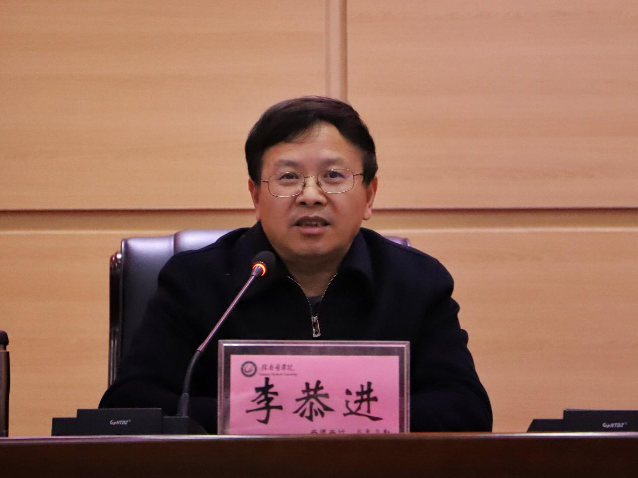 李恭进要求,一是要突出政治建设,坚决做到“两个维护”。要强化理论武装,把学懂弄通做实习近平新时代中国特色社会主义思想作为最根本的政治任务和长期的战略任务,持续提高政治判断力、政治领悟力、政治执行力;要提高政治站位,旗帜鲜明讲政治,牢固树立“四个意识”、坚定“四个自信”、坚决做到“两个维护”,始终在政治上思想上行动上和党中央保持一致;要切实坚持党的全面领导,坚持社会主义办学方向,把握好教学、科研、管理等重大事项中的政治原则、政治立场和政治方向。二是要履职尽责,切实担负起主体责任。要强力推进基层党建“三化”建设,充分发挥基层党组织战斗堡垒作用和党员干部先锋模范作用;加强干部人才队伍建设,进一步优化干队伍结构;把做好发展党员工作作为重要政治任务和党建工作的一件大事,加大力度发展党员,提高党员队伍质量;要大力弘扬红医精神,筑牢意识形态防线,督促领导干部认真履行“一岗双责”,加强对党员干部的党性党风党纪和反腐倡廉教育,建设风清气正的政治生态。三是要强化党建引领,促进学校高质量发展。要切实落实立德树人的根本任务,抓好师德师风、医德医风、教风学风建设,加强学生思想政治教育,持续开展“三个文明”建设和假期“五个一”工作;要坚持以党建工作为引领,推进“五大工程”建设,着力提高学校内涵建设,努力完成好更名大学的各项任务。