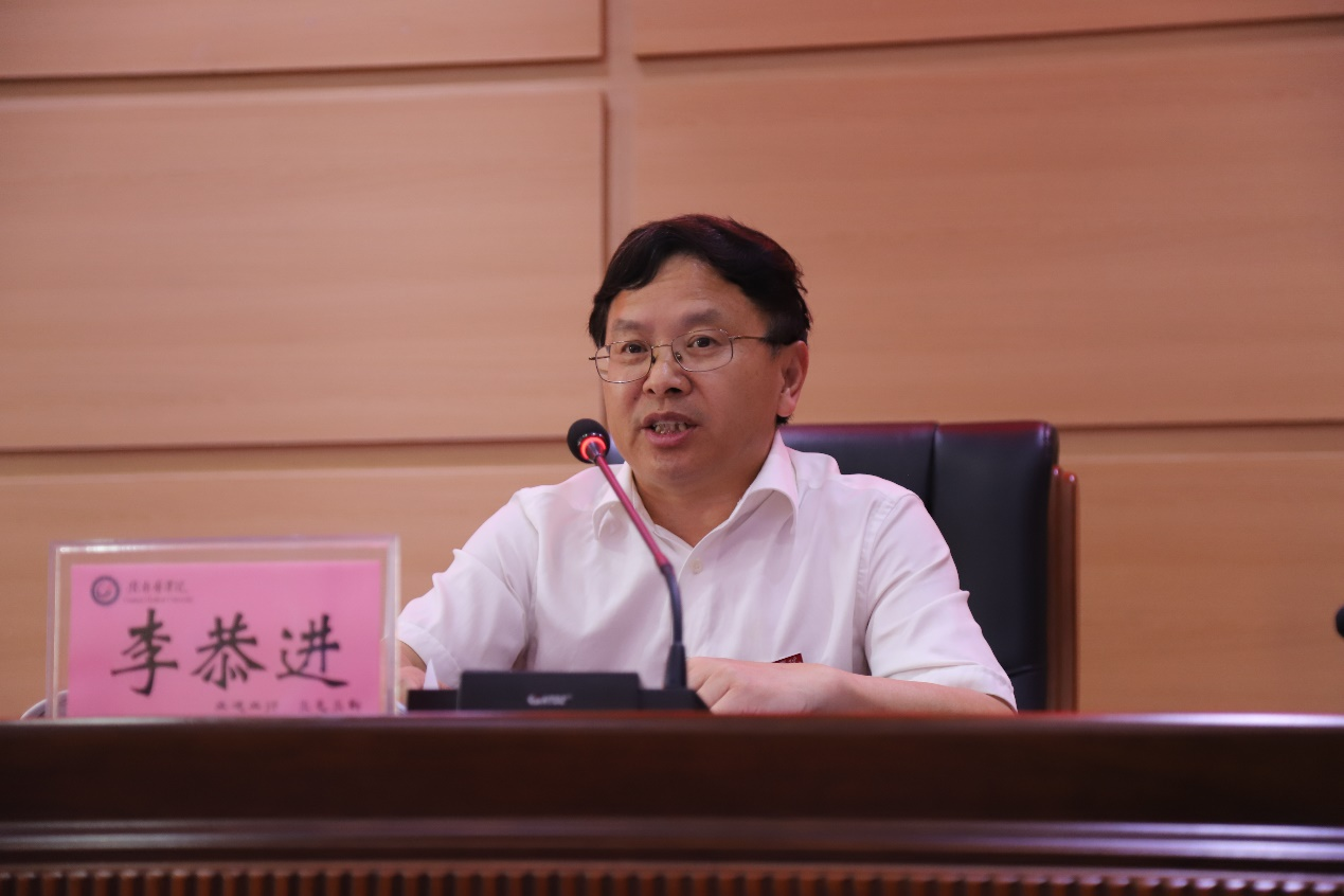 李恭进指出,一年来,学校各项事业呈现蓬勃发展态势,一是注重突出政治建设,思想武装不断强化。认真贯彻执行党的路线方针政策,坚决做到“两个维护”,思想理论武装扎实推进,党内政治生活严肃规范。二是时刻牢记人民至上,疫情防控贡献力量。校园疫情防控有效落实,逆行出征彰显大爱,常态化疫情防控常抓不懈。三是坚持立德树人,思想政治教育扎实推进。思想引领坚定有力,仁爱教育富有特色,文化育人氛围浓厚,抗疫思政入脑入心,师德铸魂深入推进。四是始终坚持务实创新,学校发展步伐加快。师资队伍建设不断提升,人才培养质量逐步提高,学科建设成效凸显,科研创新成果丰硕,校园环境日新月异,社会服务广获赞誉。