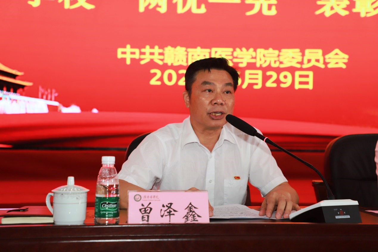 学校党委副书记曾泽鑫主持会议。他要求,要深刻领会,迅速传达好本次会议精神。积极教育引导广大党员干部认真学习,深入领会,切实树立责任感、紧迫感和使命感,对标定位,奋力赶超,创先争优,不断强化基层组织建设基础,助推学校各项事业发展。要弘扬先进,继续发挥好先锋模范作用。受表彰的同志要再接再厉,继续发扬先进党组织和优秀共产党员的先锋模范作用,努力使广大党员干部成为推动学校事业发展的带头人和主力军。要凝聚力量,形成加快发展的强大合力。学校各级党组织要认真贯彻新时代党的建设总要求,更加坚强有力的推进党的建设各项工作,更好推动党建成果转化为服务学校事业发展的不竭动力,为学校事业发展提供坚强的组织保障。