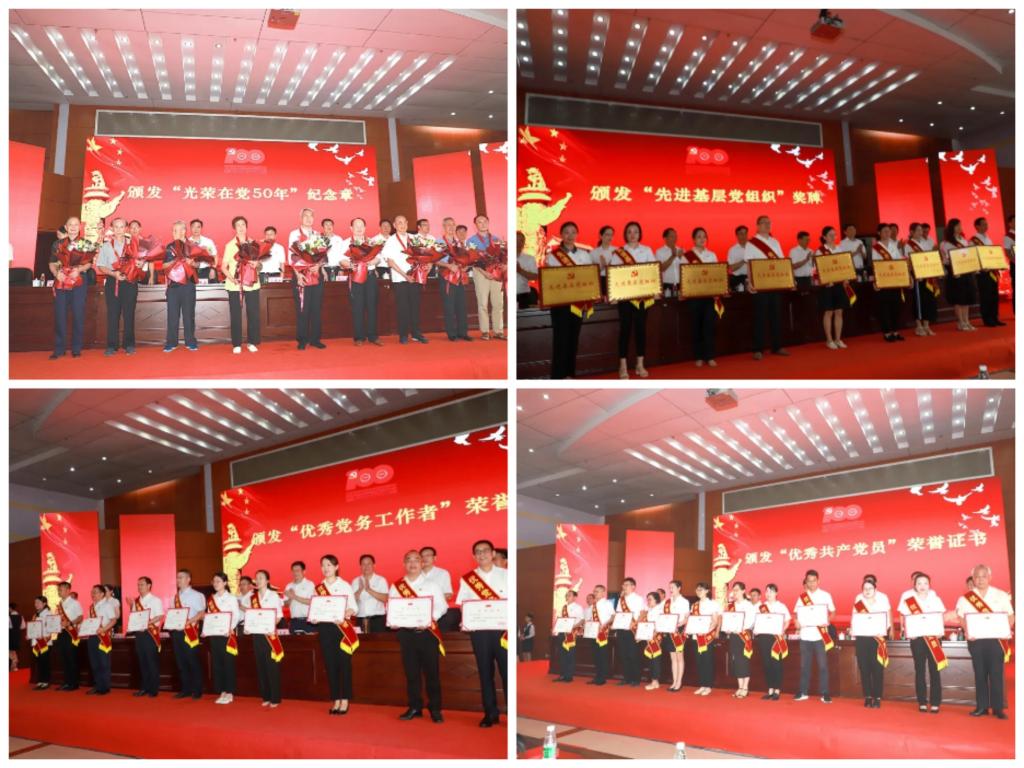 “光荣在党50年”纪念章获得者代表王宏志、优秀共产党员代表张莉芳、优秀党务工作者代表刘先发、先进基层党组织代表罗国桢在会上发言。