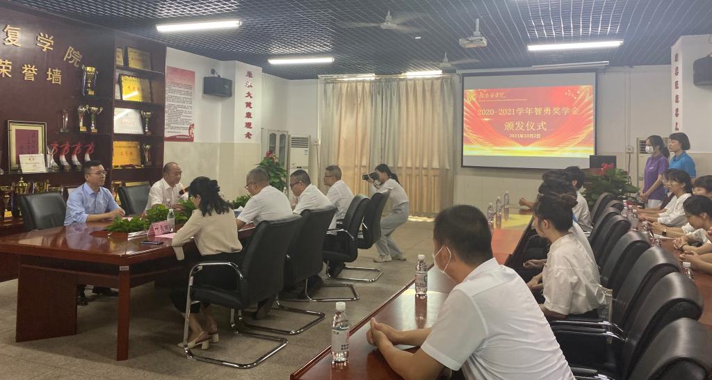 在母校建校八十周年之际,我校2005届优秀校友卢斌和周濛雅夫妇在康复学院设立智勇奖学金。10月2日上午,在黄金校区康复医学楼举行首次智勇奖学金授奖仪式,学校党委委员、纪委书记、省监委驻校监察专员肖树辉出席活动,该院院长温优良主持会议,院领导、老师及学生50余人参加活动。