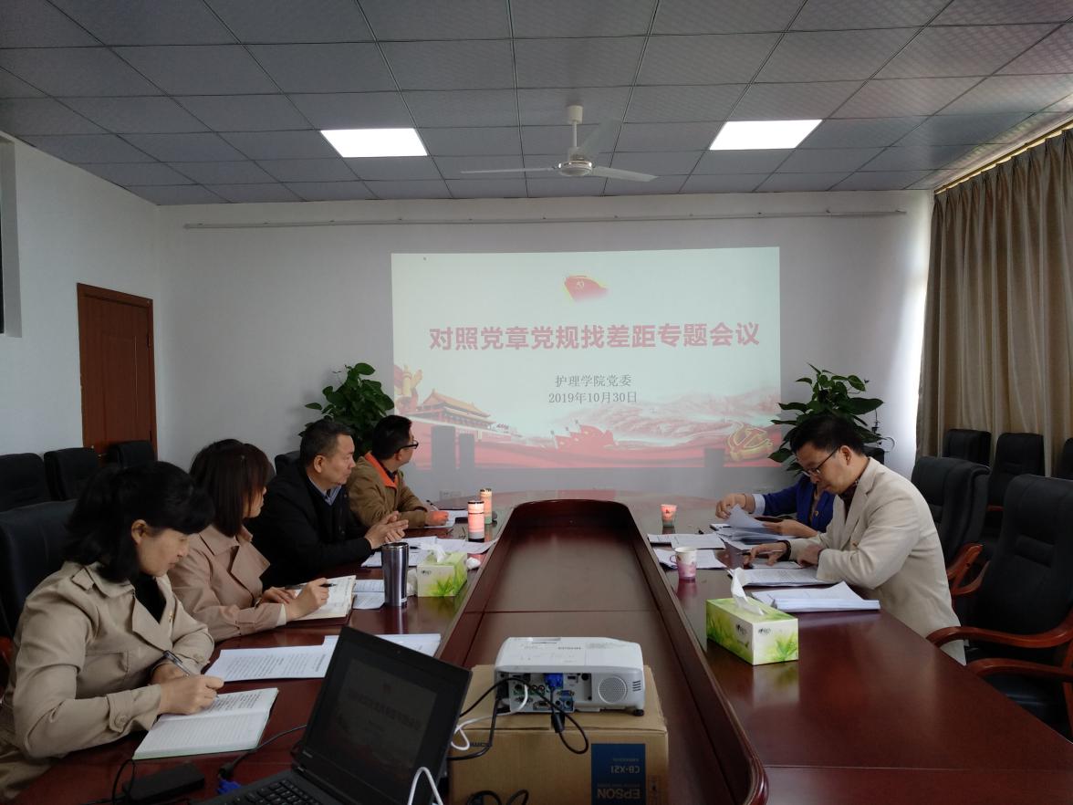 10月30日上午,护理学院党委召开主题教育对照党章党规找差距专题会议,学校主题教育督导组成员黄光生、赖华香莅临指导,护理学院党委书记陈志远主持会议。