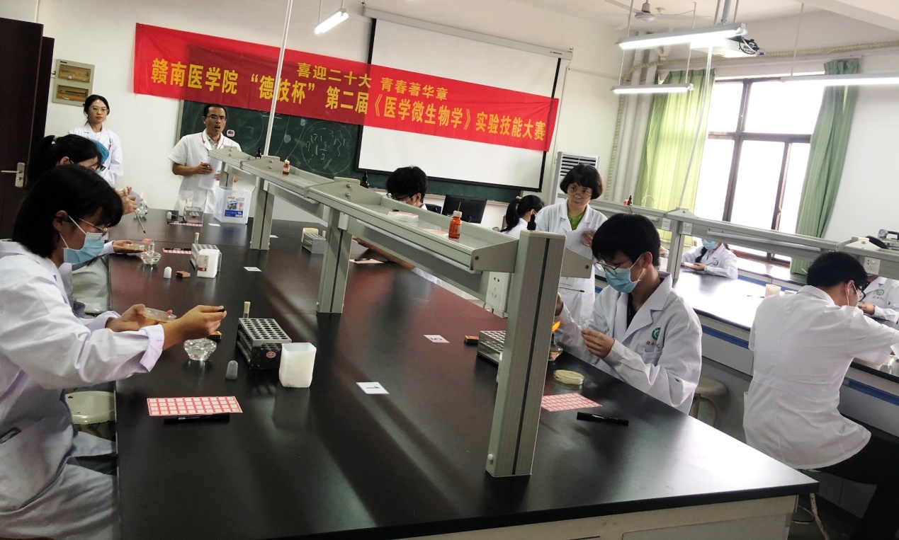 5月15日,基础医学院举办“喜迎二十大 青春著华章”“德技杯” 第二届大学生医学微生物学实验技能操作大赛。来自临床医学、预防医学、麻醉学等专业的99位同学参赛。