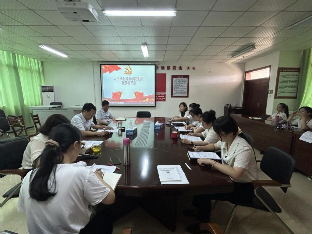 6月28日,人文社会科学学院召开警示教育会,该院党政领导,教职工参会,党委书记王立主持。
